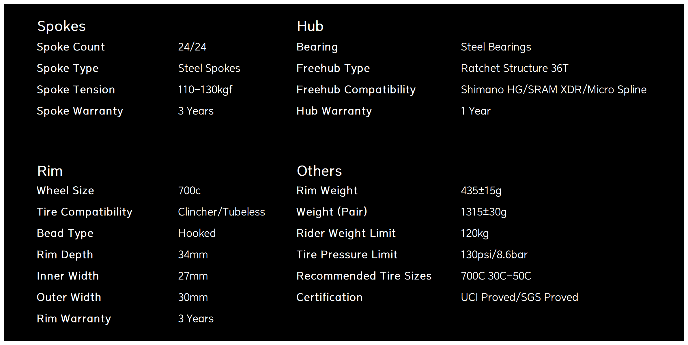 The rims are made from Toray T800. Toray T800 is a high-quality carbon fiber material with a shallow specific gravity, which can significantly reduce the rim's weight, improve the vehicle's acceleration performance, and climbing efficiency, and reduce rider fatigue. Carbon fiber materials can absorb road vibrations and provide a more comfortable riding experience than traditional metal materials. This feature is essential on long rides or bumpy roads.