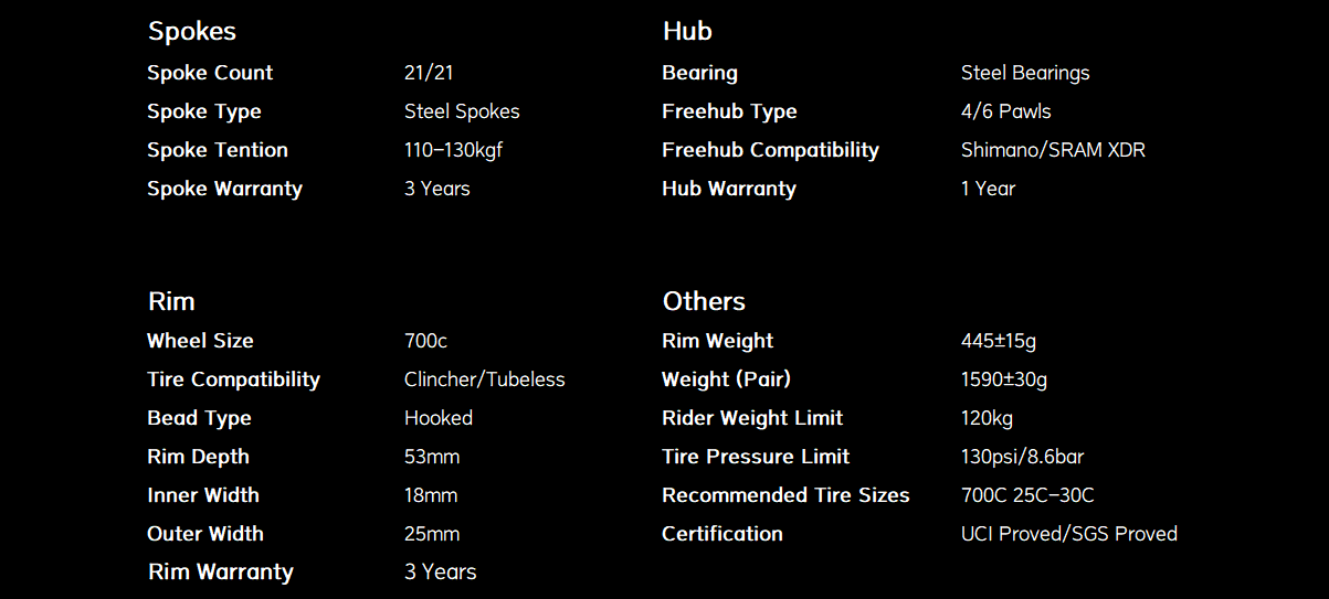 Los radios de la rueda trasera de la versión con freno de llanta y de las ruedas delanteras y traseras de la versión con freno de disco utilizan un método de trenza plana 2:1 para distribuir razonablemente la tensión de los radios, lo que hace que la transmisión del pedaleo sea más potente.