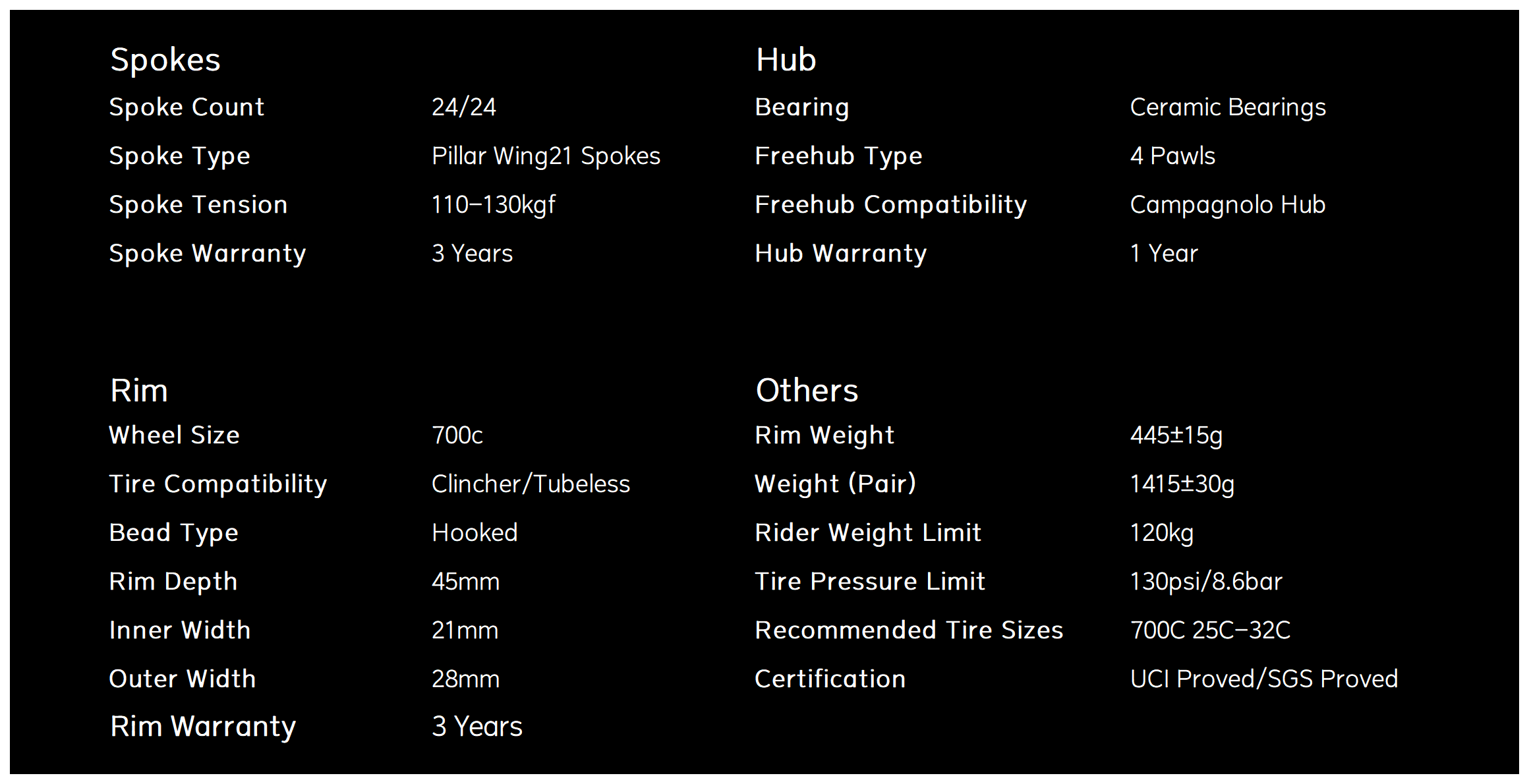 Spokes and wheels have been upgraded from the classic version to ceramic bearing wheels and straight pull spokes, while the disc version gets a rear wing 21 spoke. 21-spoke wing wheels are usually aerodynamic, meaning that the shape of the wheel and the layout of the spokes reduce air resistance, resulting in increased riding speed and efficiency. Although the wheels are designed to be lightweight, they are still generally strong and rigid, able to withstand high forces and pressures and maintain a stable ride.