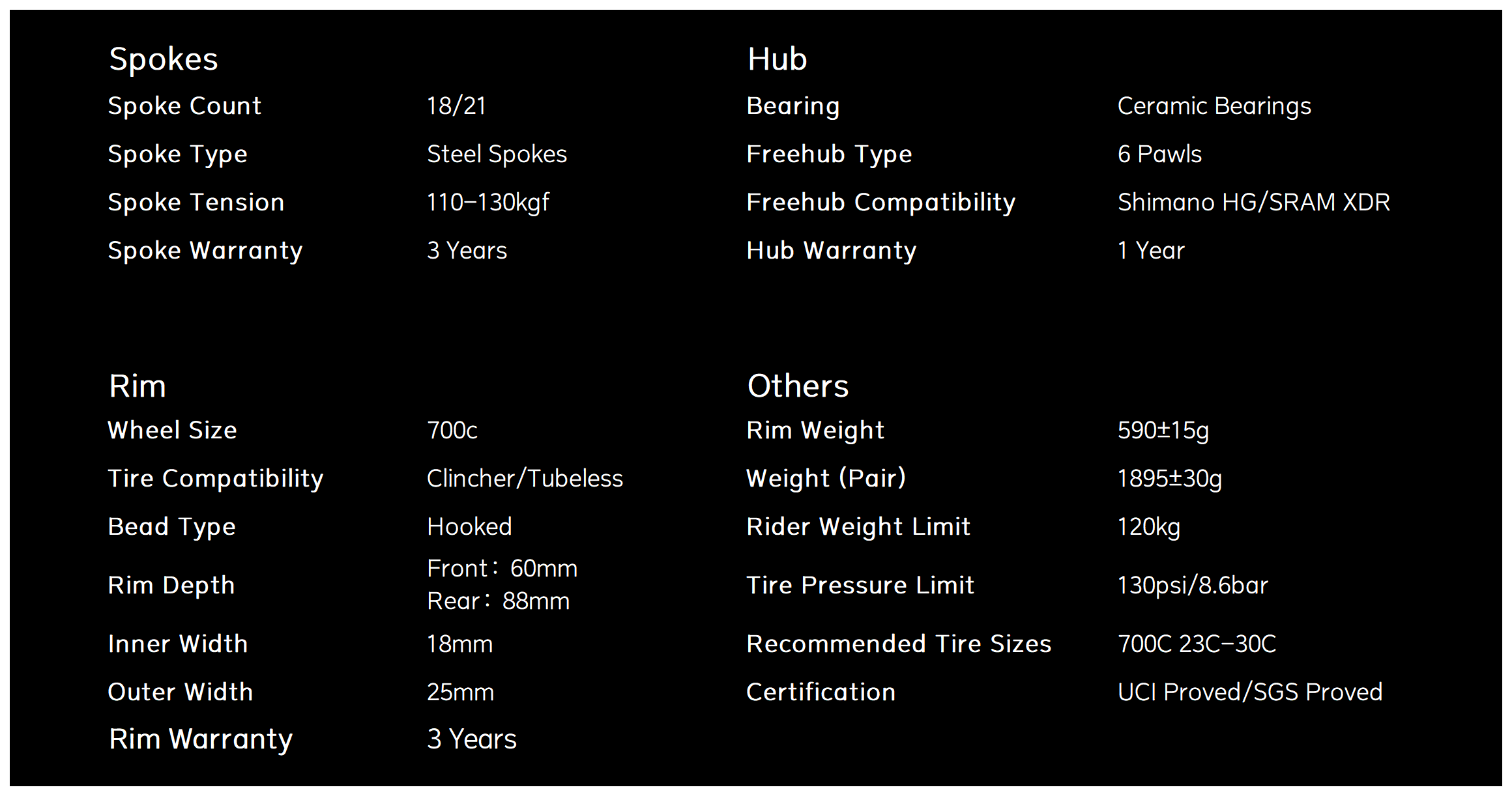 Classic PRO R25-60/88 Carbon Wheelset Rim Brake Black Decals