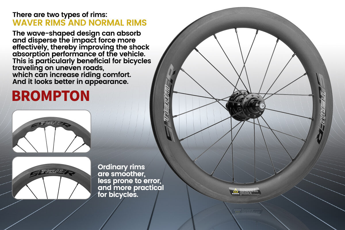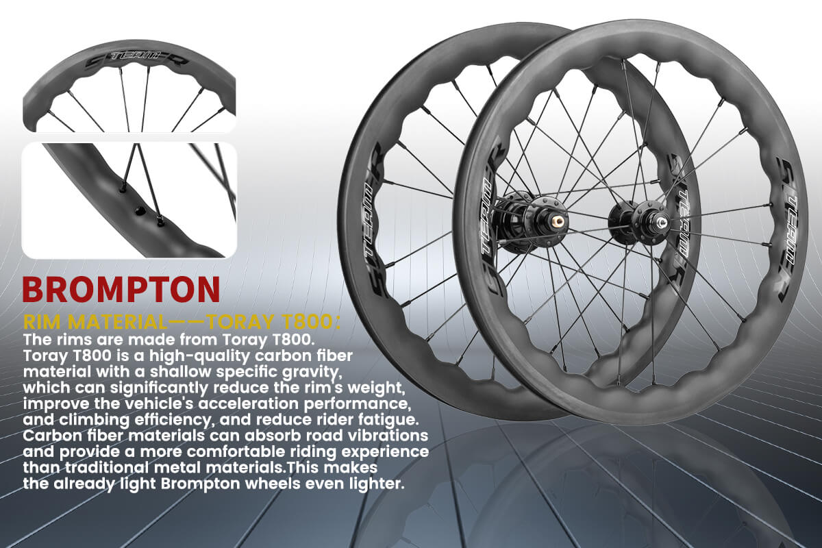 Paire de roues en carbone 349 25-38 avec frein sur jante pour Brompton