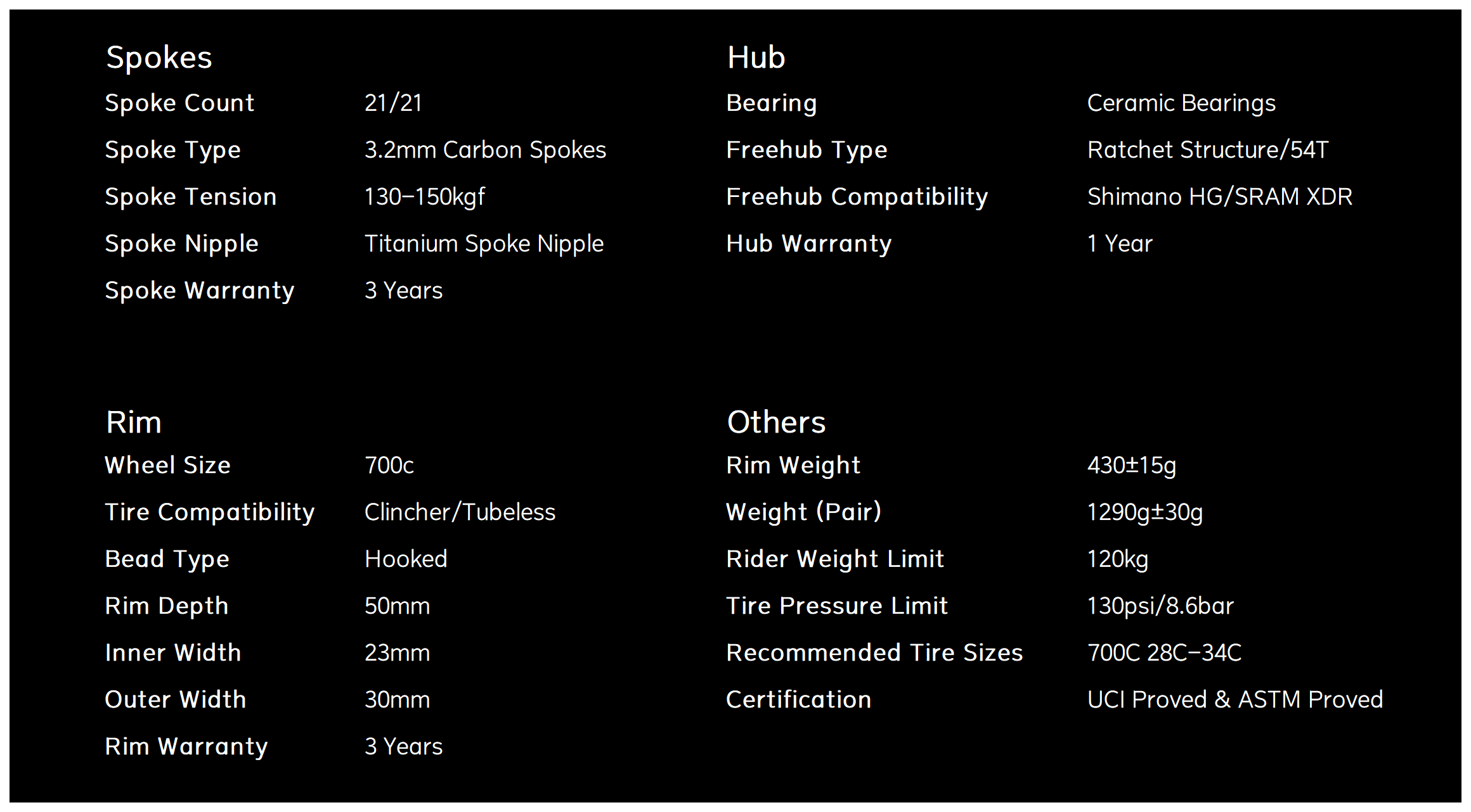 The weight of the carbon fiber wheel set of 1290g is already super lightweight, which is very competitive among the wheels of the same level, especially suitable for climbing and long-distance riding. The lightweight design also reduces the moment of inertia of the wheel set, making the acceleration response faster, and it is also suitable for aggressive riders.